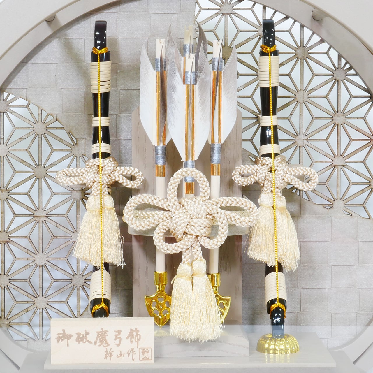円形のアクリルケースに収められた美しい飾りで、軽量なデザインを特徴としています。伝統的な破魔弓をモダンなスタイルで楽しむことができ、自宅の空間を演出することが可能です。人気のアイテムで、シンプルながらも洗練された印象を与えるため、どんなインテリアにもマッチします。年中を通じて使用できるため、贈り物にも最適です。