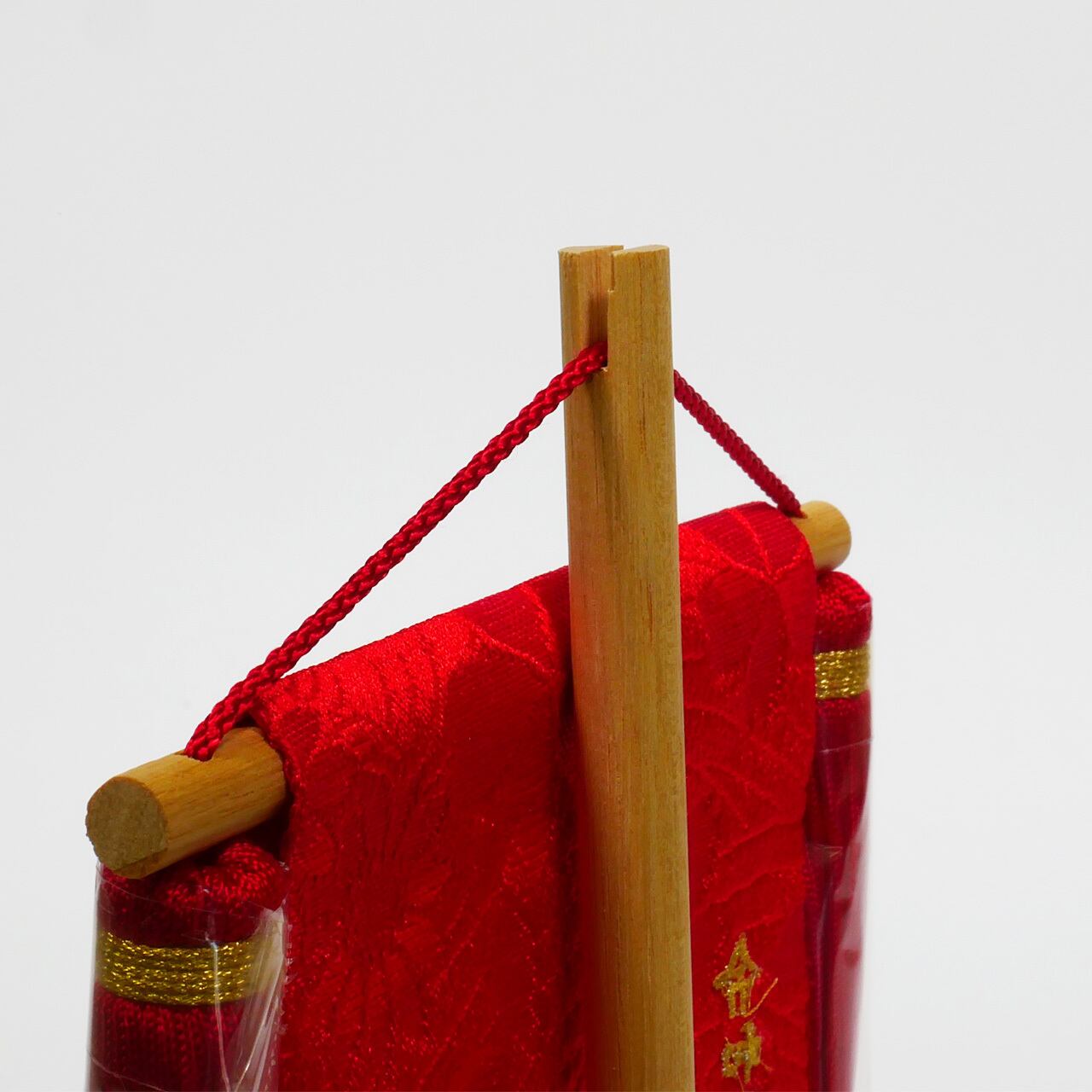 明るい赤色が印象的な立体刺繍 金襴名前旗(小)は、お子様のお名前を愛らしく立体的に刺繍した一品です。デザインは、特別なお祝いの場や贈り物としても最適で、お子様の成長を祝うのにぴったりなアイテムです。ひな人形やその他の飾り物を引き立て、お部屋を華やかに彩ります。